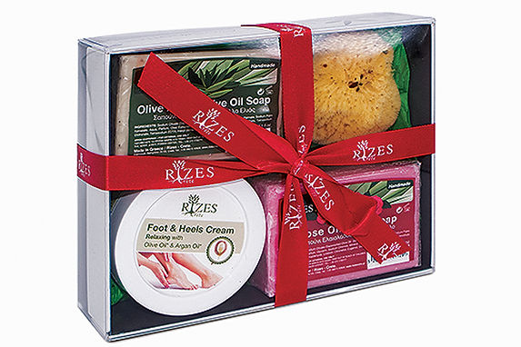 Gift set contains: Foot cream 80 ml – 2×100 gr Soaps – Sponge.